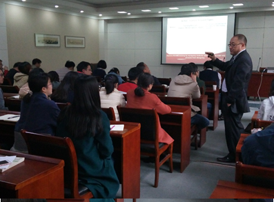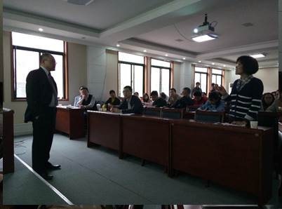 然后是师生提问交流环节,共有四位师生就自己的问题与曾勇教授进行了互动。其中一位教师根据自己研究学习压力和效率的关系和曾勇教授进行了心得交流,曾勇教授认为首先应明确表现和压力的关系,然后量化教学中的压力,进而分析研究。